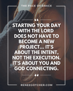 It’s about the intent, not the execution. It’s about you and God connecting; it’s about starting your day with the right perspective. Let God lead you in the details of what this should look like for you. He’ll point you to what’s most important in this season.