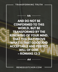 “And do not be conformed to this world, but be transformed by the renewing of your mind, that you may prove what is that good and acceptable and perfect will of God.” – Romans 12:2